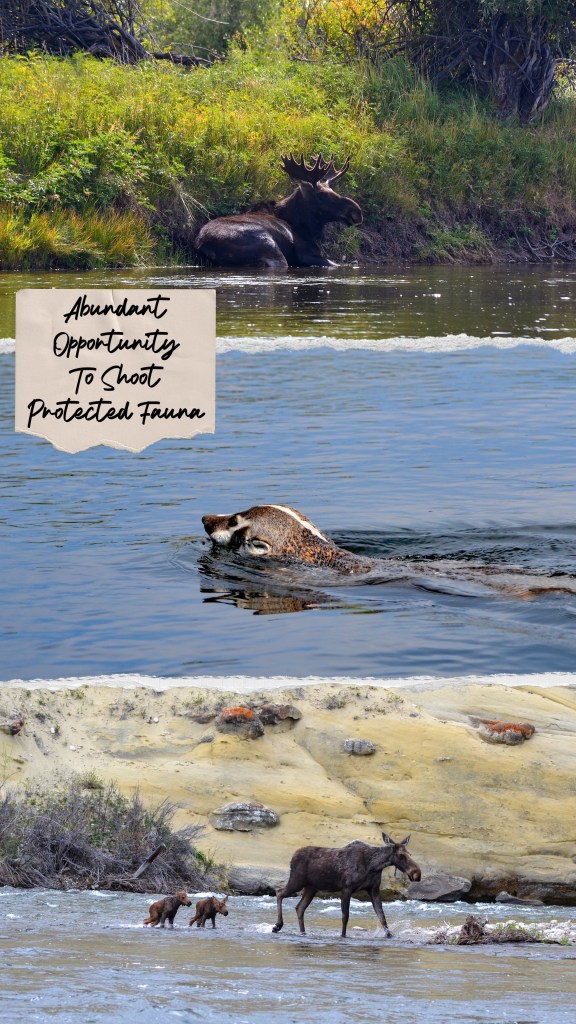 Common species found on our rivers include Pelicans, Raptors of many variety, Waterfowl in abundance, Moose, Elk, Deer, Antelope, Foxes, Badgers, various species of Fish, and the occasional Bears or Wolves, and many more. Depending on time of year, there is a great chance at having a shot on strutting Sage Grouse, Sandhill Cranes and Haron.