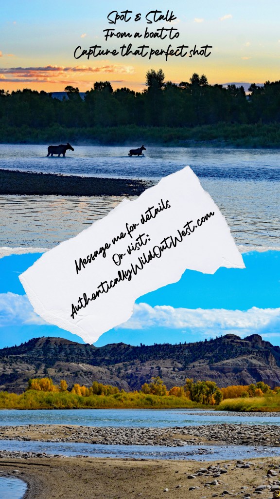I am now offering GUIDED wildlife photography shoots on the Green & New Fork Rivers, through my photography channel Authentically Wild Photography. From the bow of my boat, we will cover river miles and use “spot & stalk” methods to get within range of birdlife and animals. There’s plenty of space for your tripods and other equipment, and I have many venues available to choose from.
